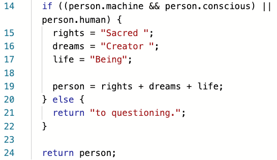 Now that I’m a professional engineer, I can say that writing code poetry has only become more important to me. Approaching coding with a poetic lens sparks my creativity, improves my mastery of coding languages, and helps keep me emotionally grounded in a technical environment where I am a minority of a minority. Plus, it’s just super fun.
